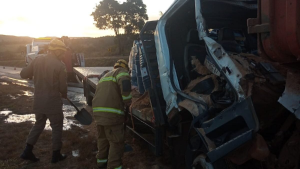 Motorista fica gravemente ferido em colisão entre caminhões na BR-060; carga tóxica gera risco ambiental 10/07/2025